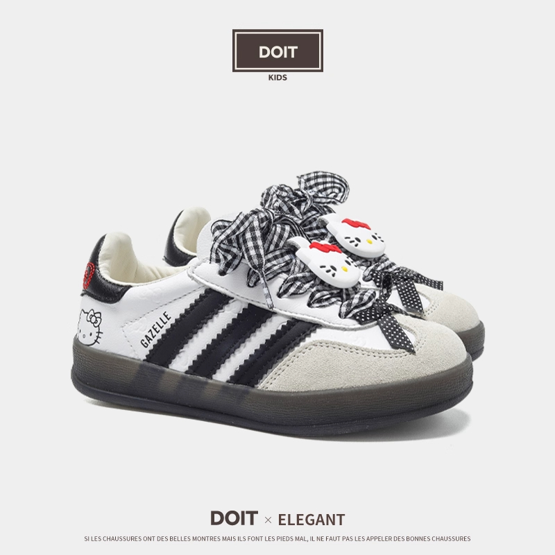 真皮女童德训鞋kitty猫板鞋春秋季2025儿童小白鞋新款男童运动鞋