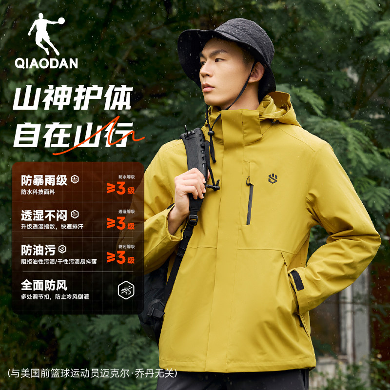 乔丹山神冲锋衣三合一外套夹克防水男2025秋冬季防风保暖官方正品