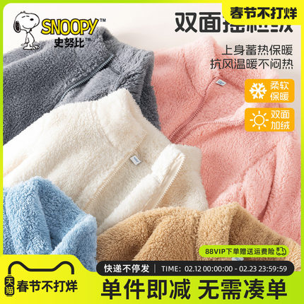 史努比女童摇粒绒外套加绒开衫冬