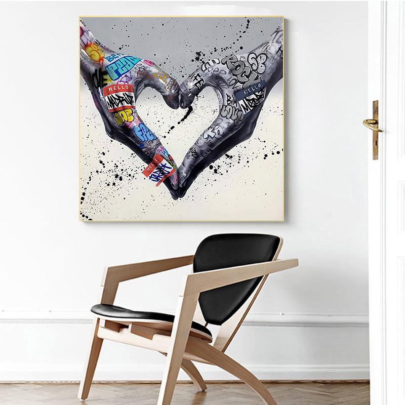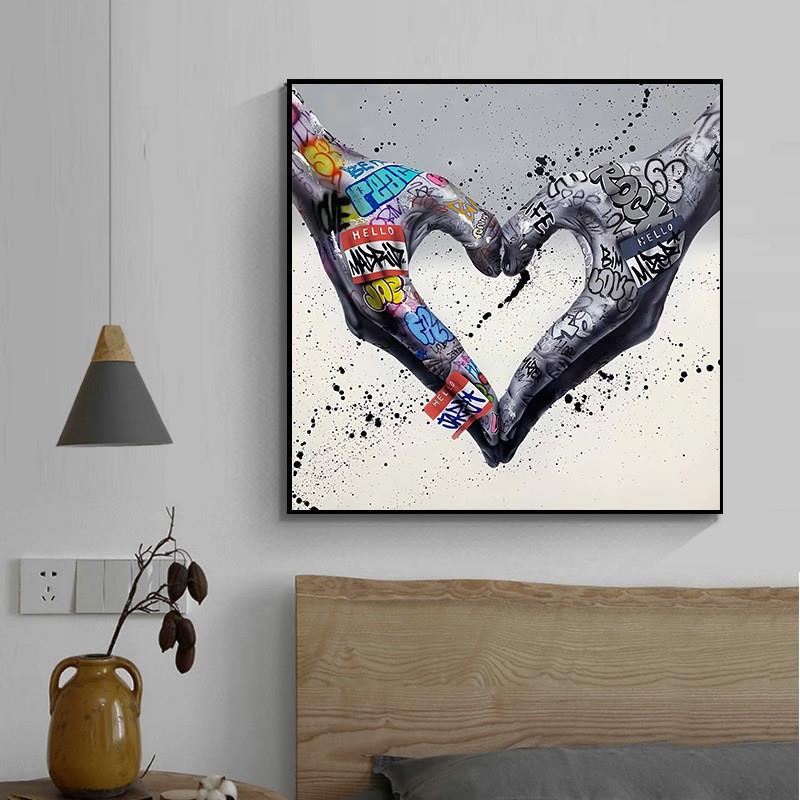 彩色涂鸦爱心手势家居帆布画 客厅玄关挂画壁画无框画芯