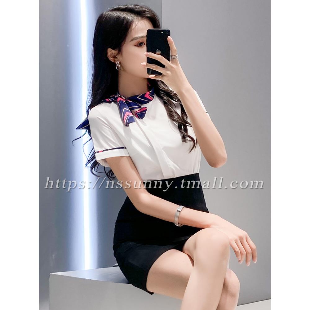 职业装长短袖白衬衫美容院前台工作服时尚气质空姐制服套装衬衫女