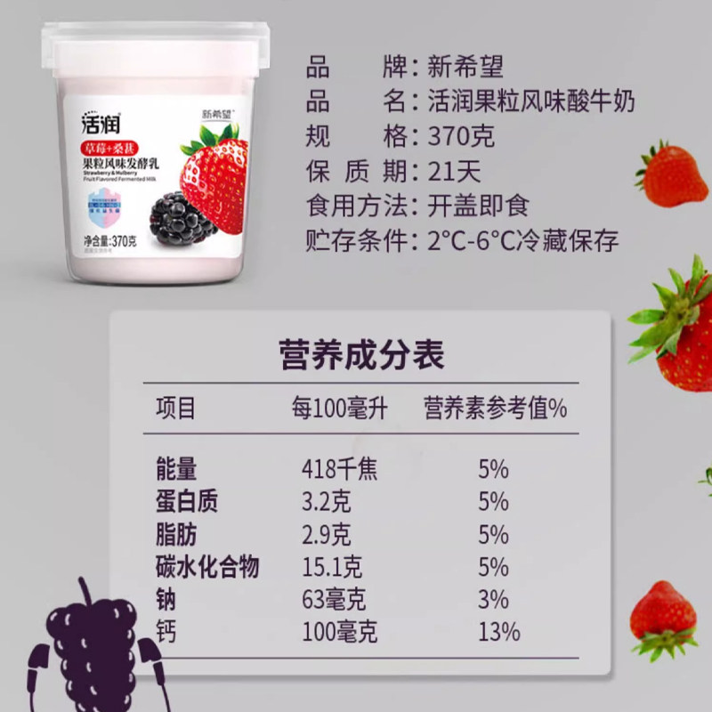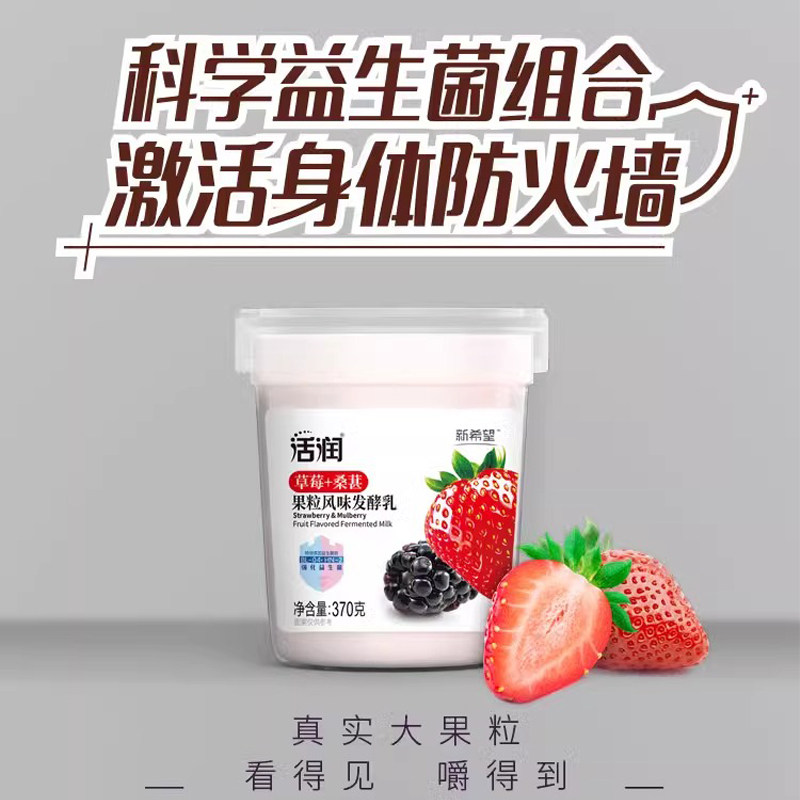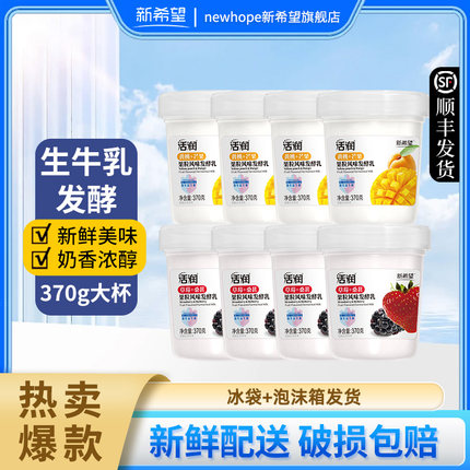 新希望活润酸奶大果粒草莓风味+芒果味酸牛奶370g酸奶整箱大桶装