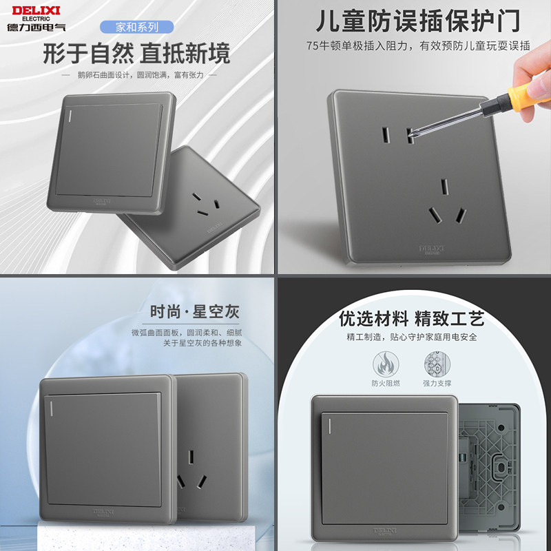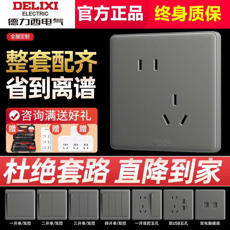 【官方正品】德力西灰色开关插座