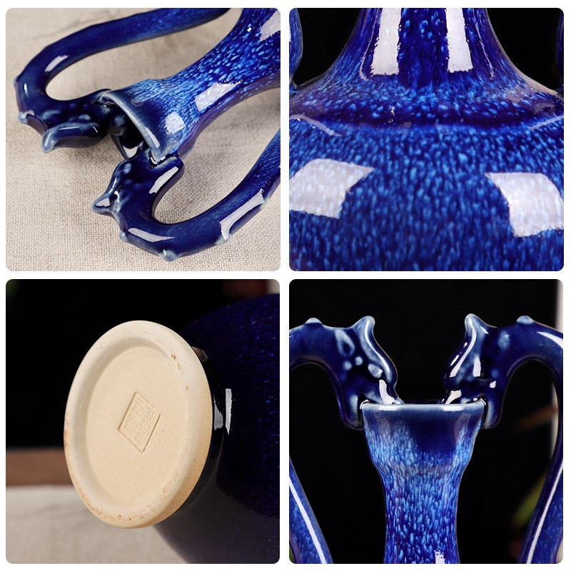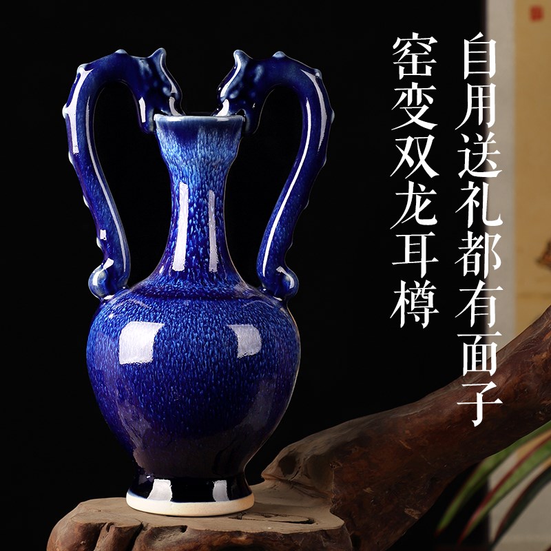 景德镇仿古钧瓷窑变釉小花瓶陶瓷客厅插花中式瓷器家居装饰品摆件