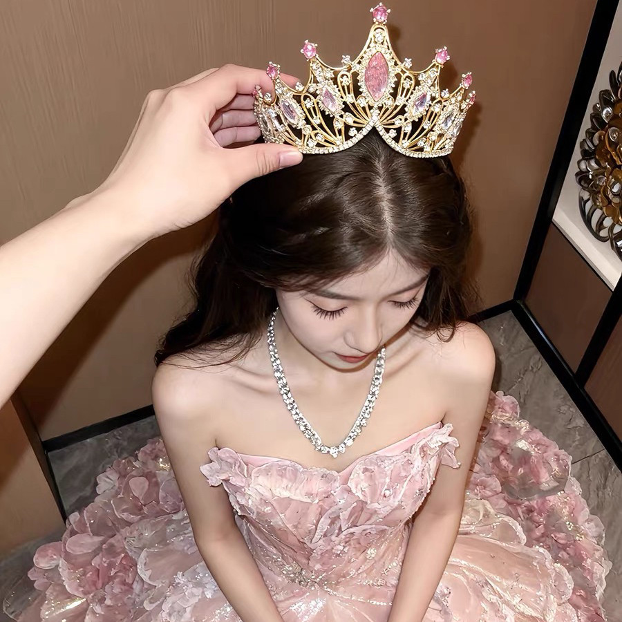 为你加冕~粉色水晶公主皇冠头饰女十八岁生日王冠lolita拍照发箍