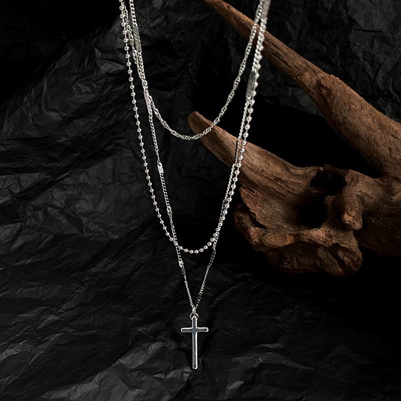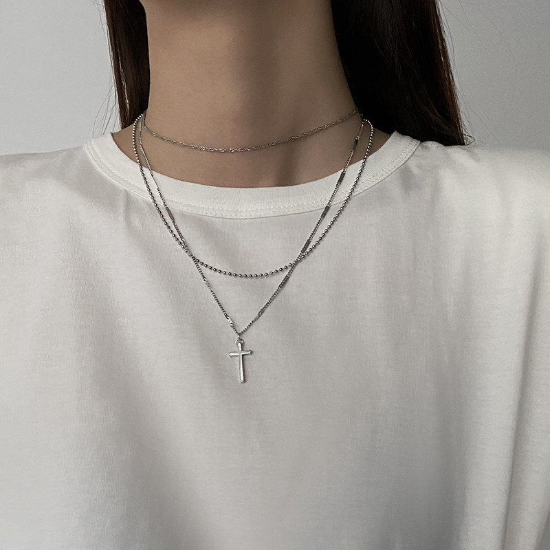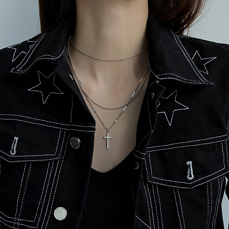 欧美简约十字架项链女潮高级感多层叠戴个性锁骨链时尚气质脖颈链