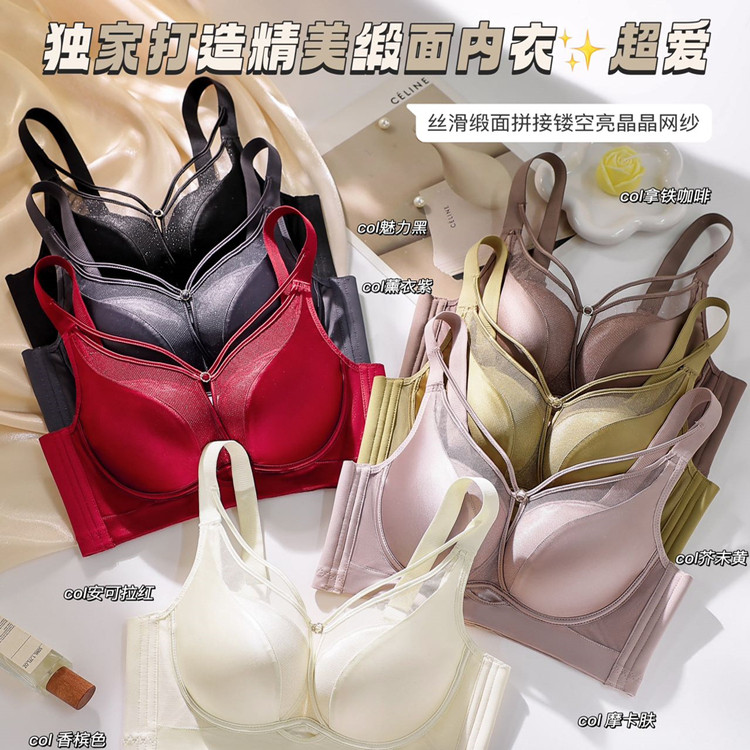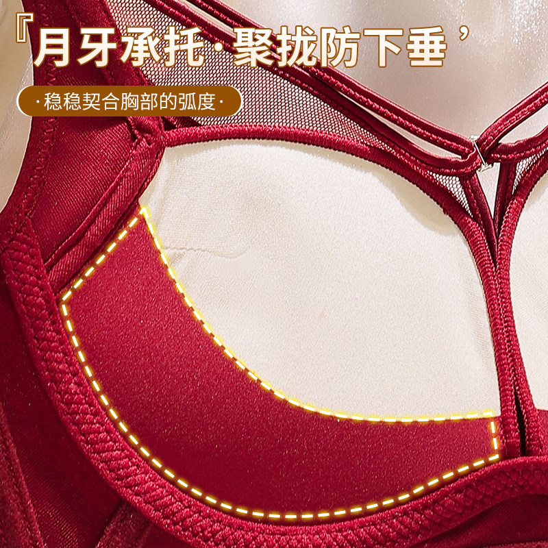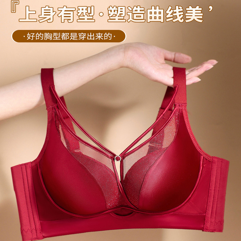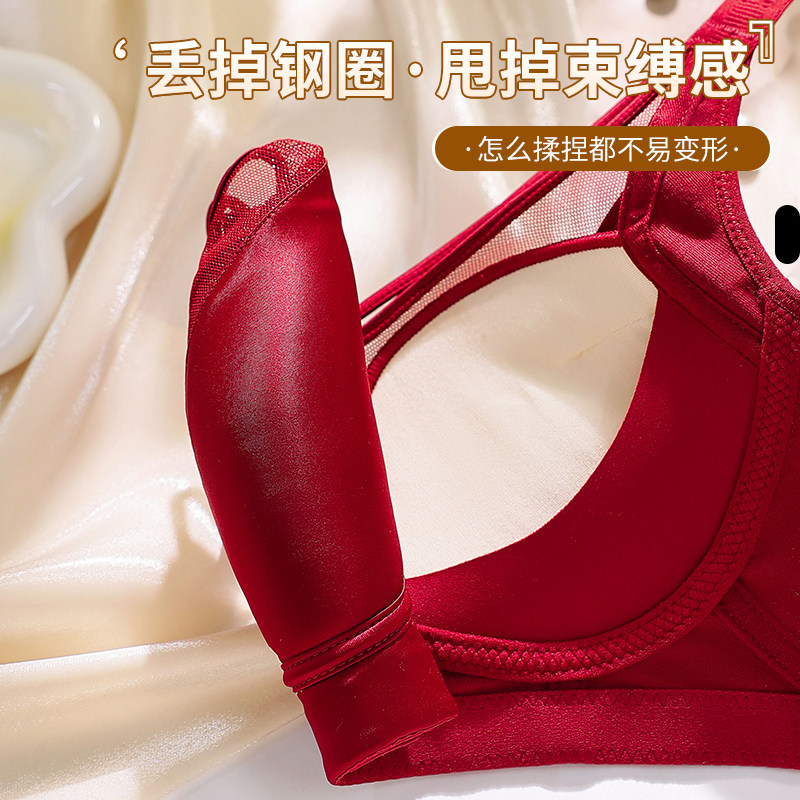 本命年结婚红色女士内衣小胸聚拢显大收副乳防下垂光面文胸罩套装
