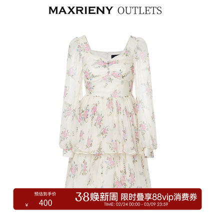 【奥莱】MAXRIENY复古真丝碎花连衣裙桑蚕丝裙子