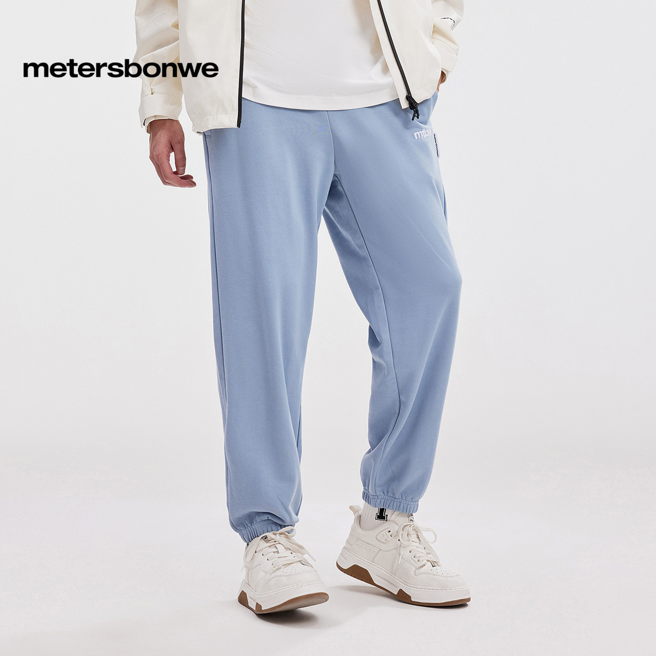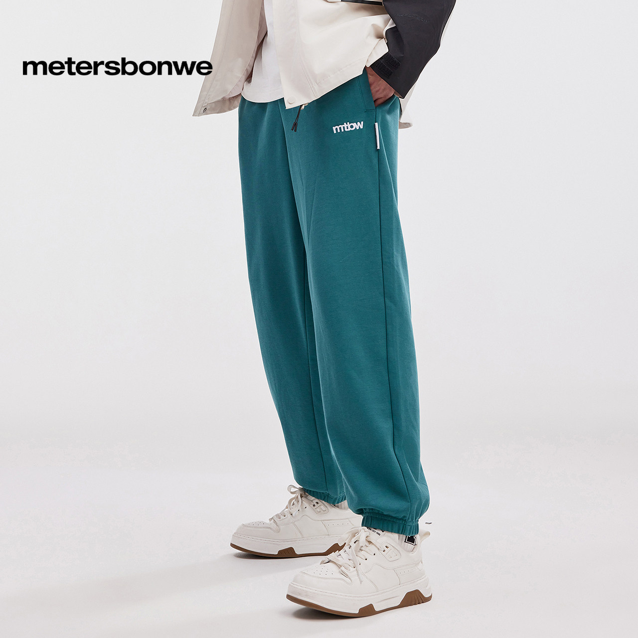 美特斯邦威时尚卫裤男女同款绣花针织秋冬新款宽松休闲束脚运动裤
