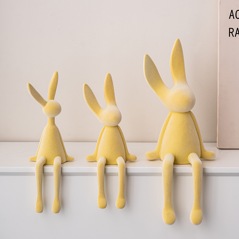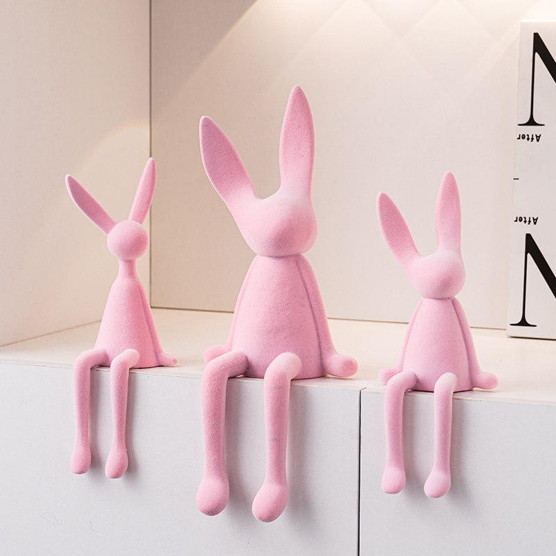 现代简约卡通植绒坐姿兔子摆件客厅售楼处装饰品公仔克莱因蓝摆设