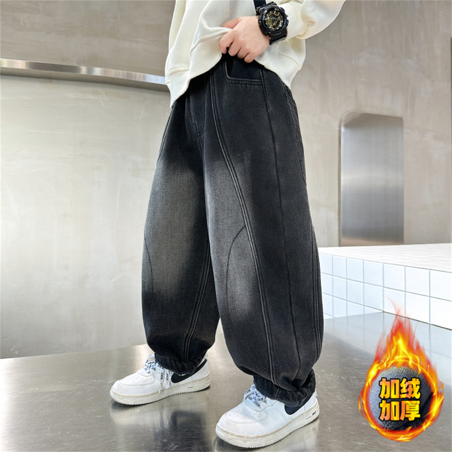 男童裤子加绒加厚外穿2025新款秋冬帅气中大童冬季宽松哈伦牛仔裤