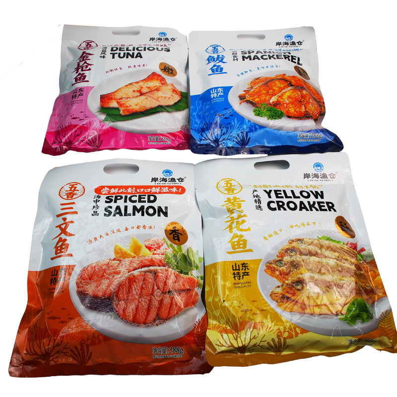 岸海渔仓即食五香鱼金枪鱼黄花鱼三文鱼鲅鱼香辣海带烟台特产零食