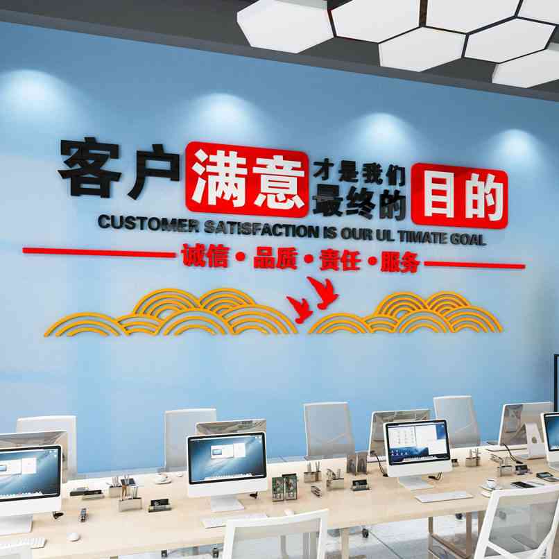 办公室墙面装饰公司企业文化背景会议室布置励志中介销售门店贴纸