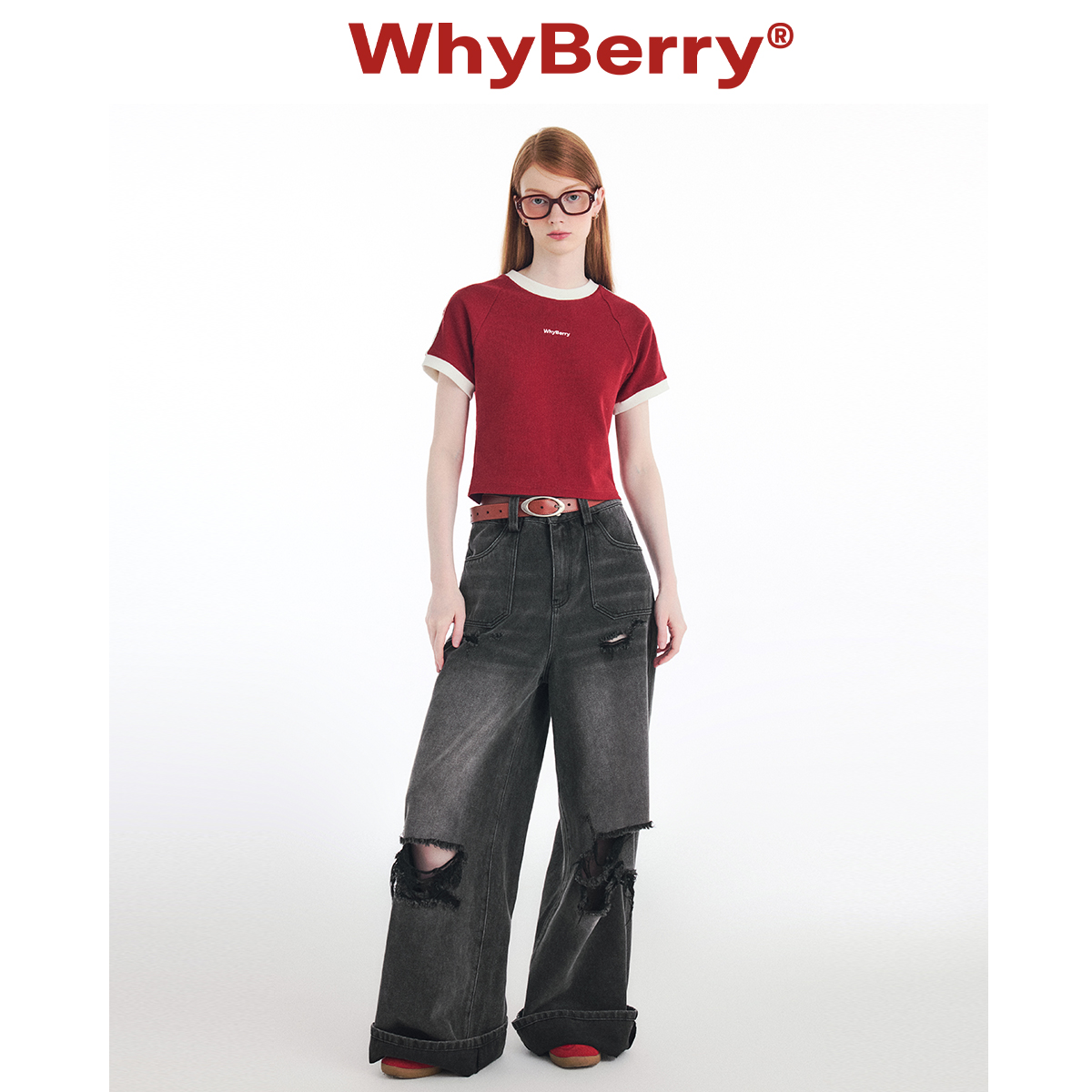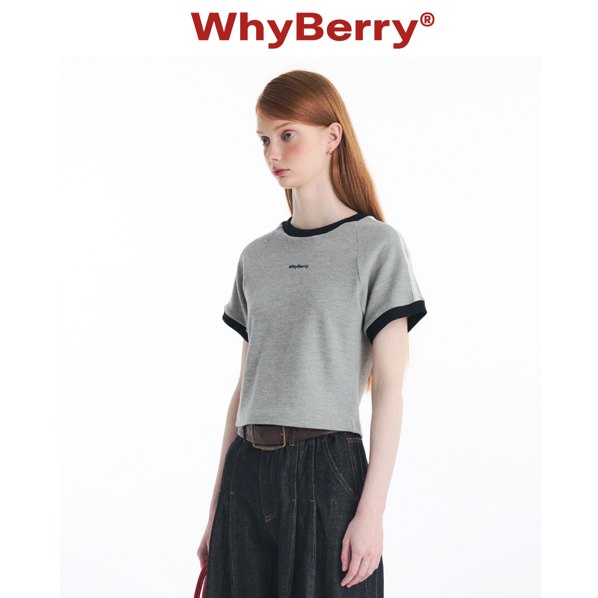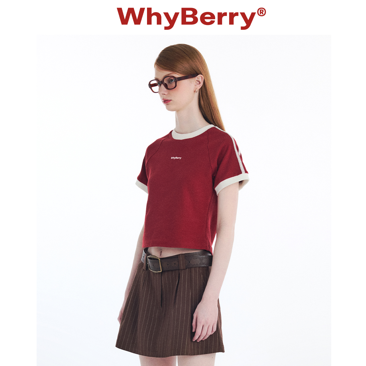 WhyBerry 24SS“学院夏日”美式复古T恤撞色短袖插肩袖红色上衣女