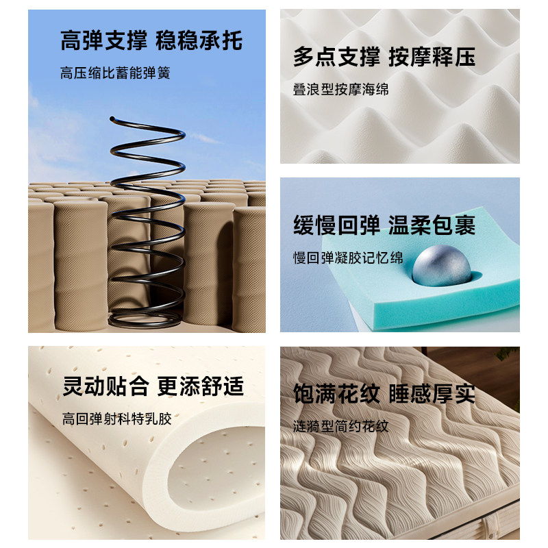 【新品】8H乳胶记忆棉独立弹簧床垫1.8米家用偏硬护脊23CM厚垫子