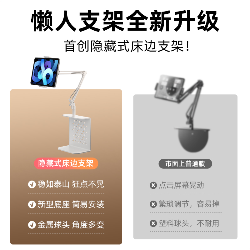 【新款隐藏式】七鹰床上平板电脑手机架支架床头ipad懒人桌面支撑架万能通用固定多功能折叠直播追剧专用神器