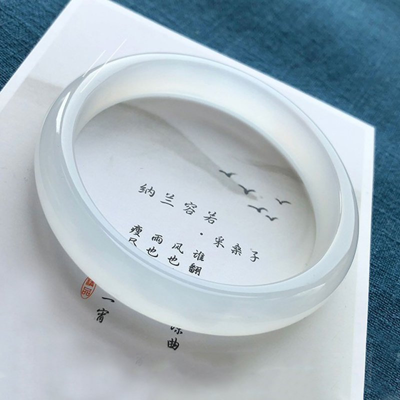 天然正品A货白月光玉髓手镯冰种玛瑙玉镯子女款荔枝冻少女送礼女