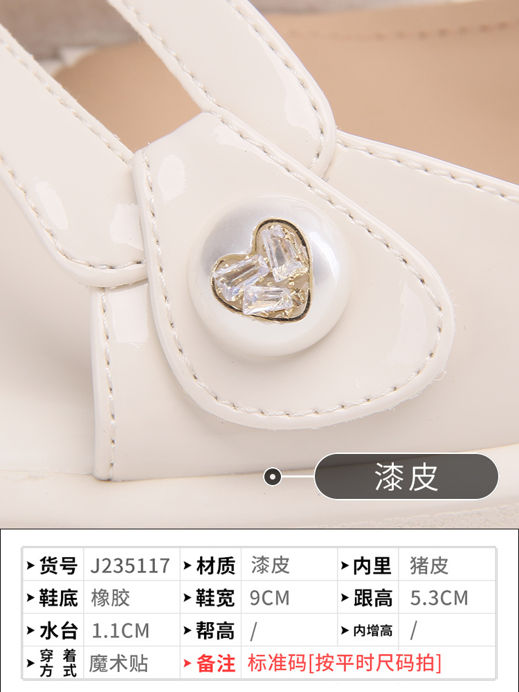 嘉俪多英伦凉鞋女漆皮粗中跟魔术贴露趾圆头珍珠气质新款夏季时尚