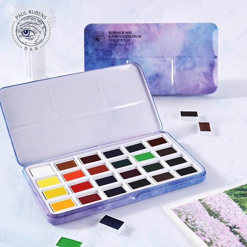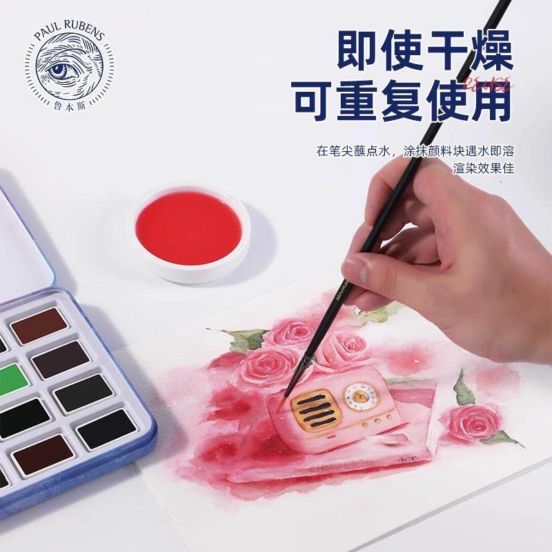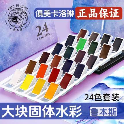 鲁本斯俱美卡洛林固体水彩颜料初学者学生美术生大块大磅24色套装