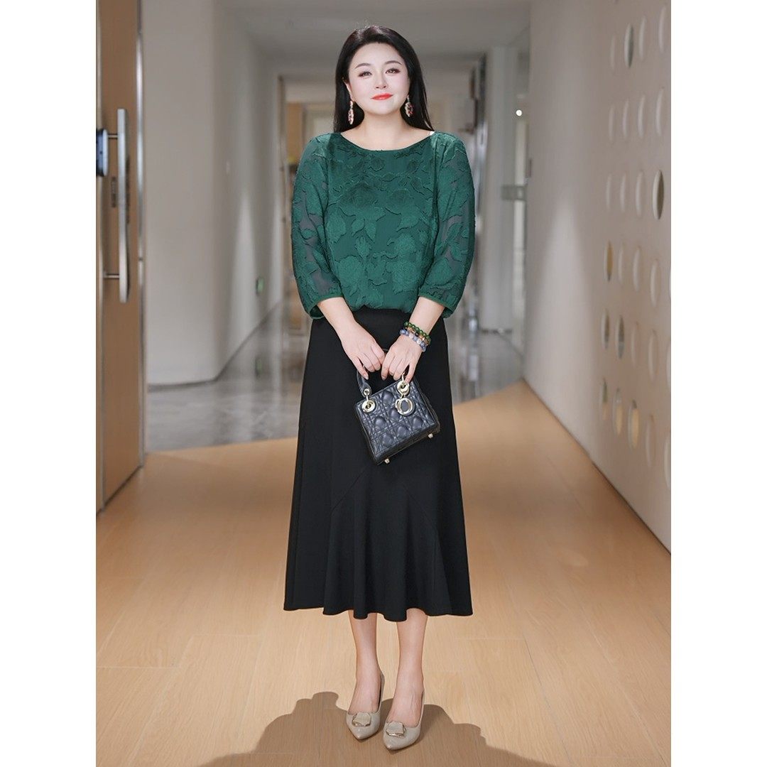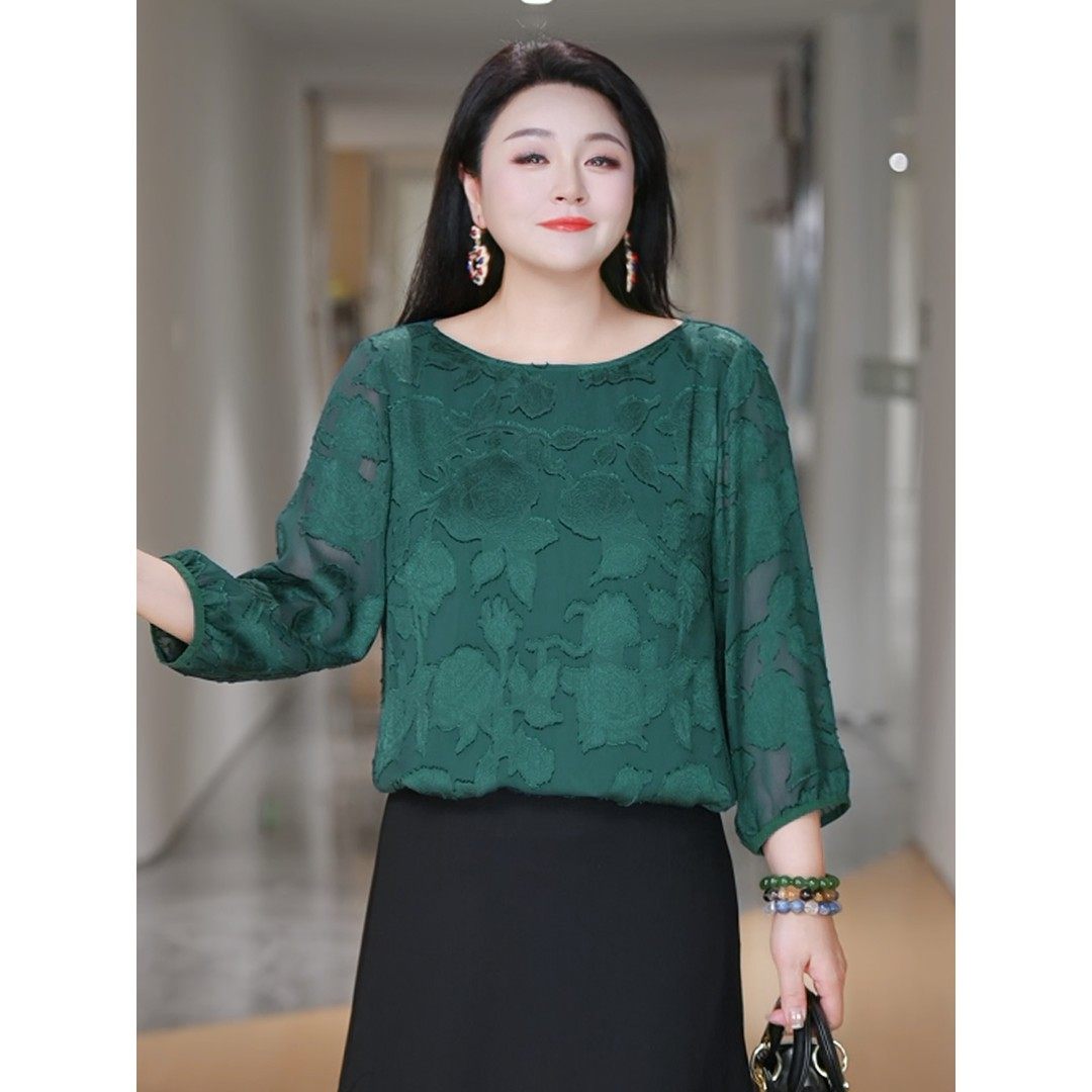 【气质幽兰】MsShe大码女装新款秋装复古立体剪花小衫T~B2508051