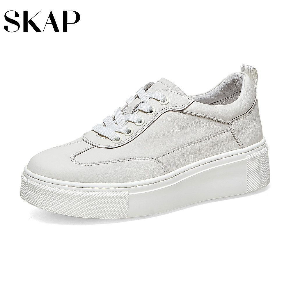 SKAP圣伽步秋季新商场同款百搭厚底小白女真皮休闲鞋ADC01AM3