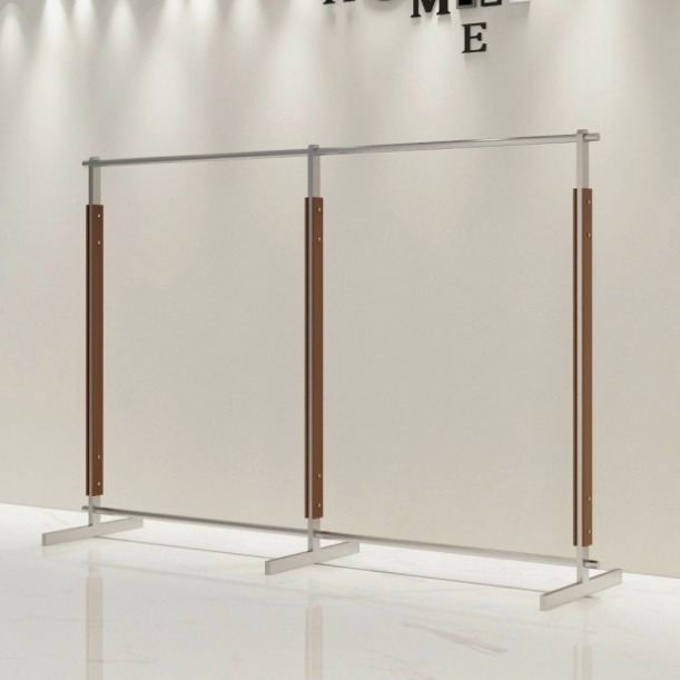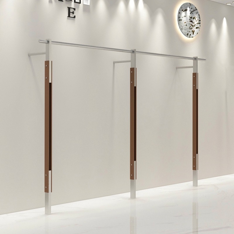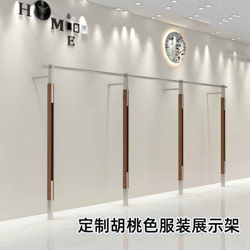 服装店展示架胡桃色上墙货架不锈钢服装架落地衣架女装中岛陈列架