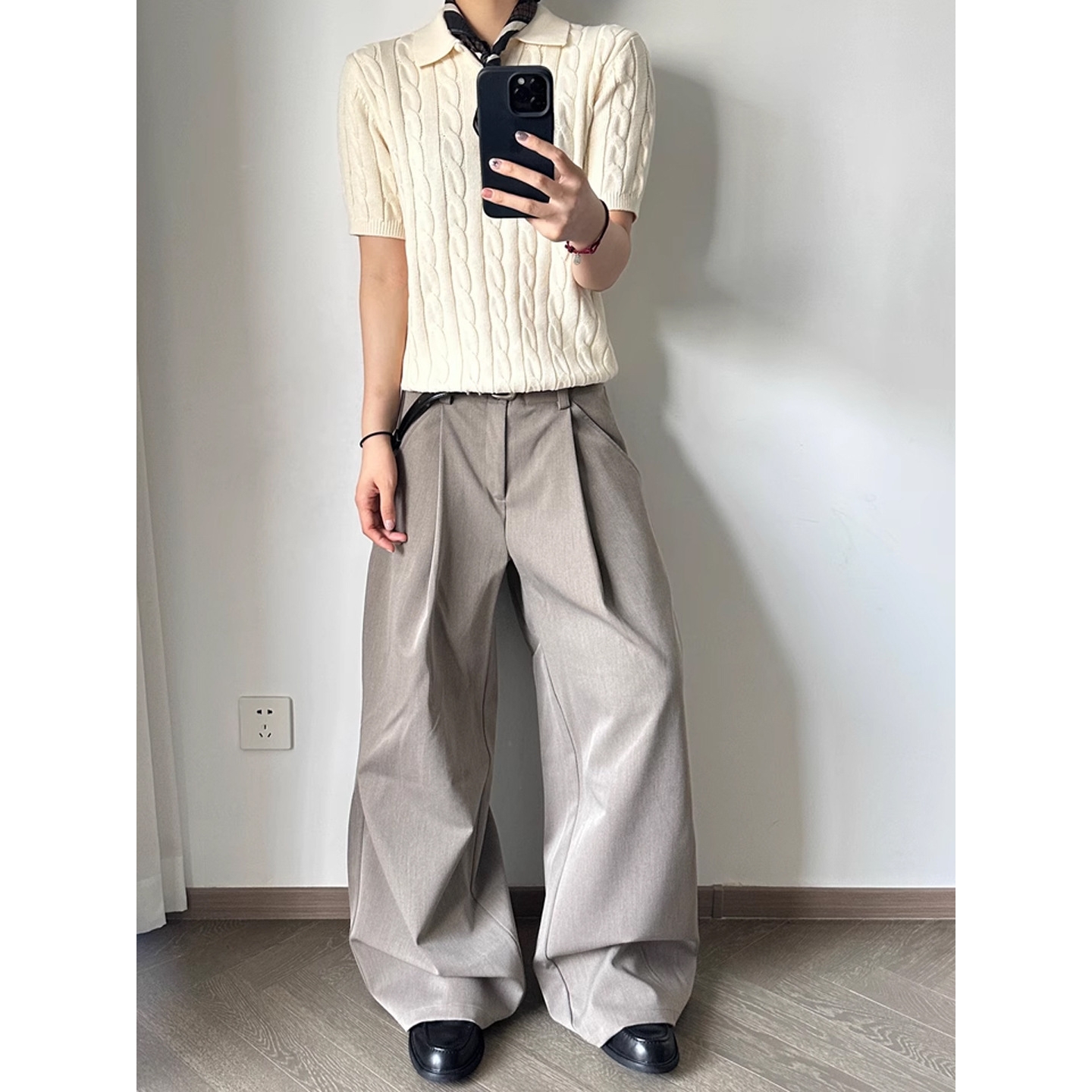 卡其色双折a字西裤男款夏薄款cleanfit弯刀裤子通勤穿搭阔腿长裤