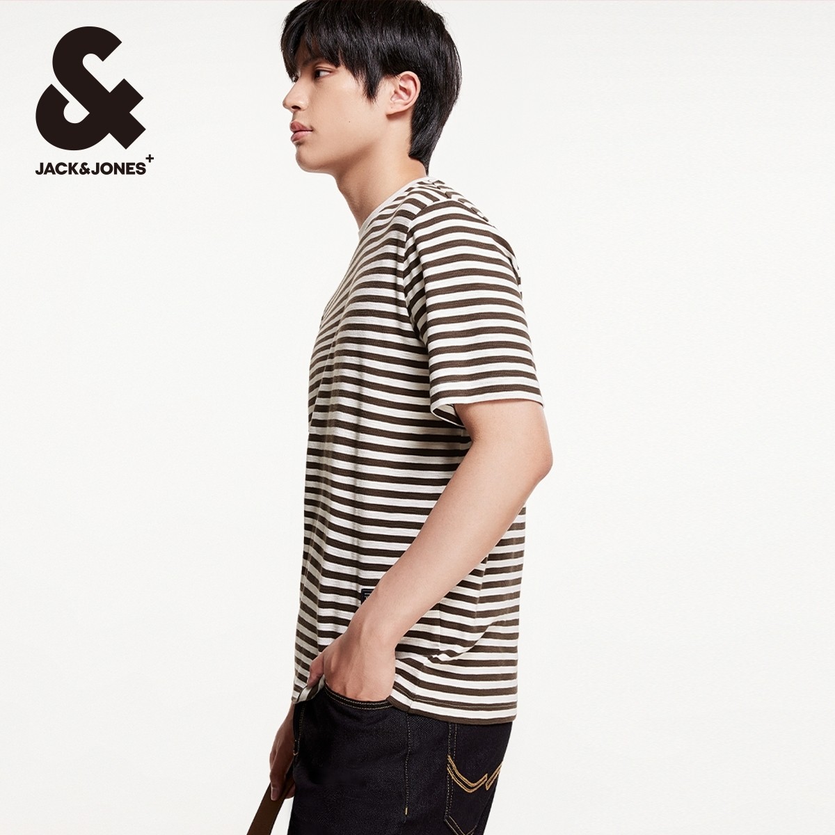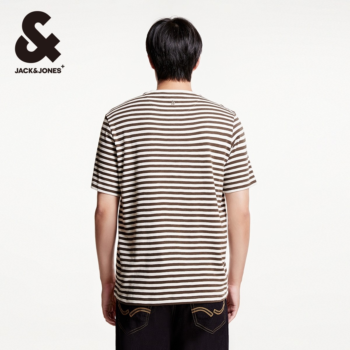 杰克琼斯短袖T恤男款男装夏季男士经典条纹刺绣logo纯棉上衣