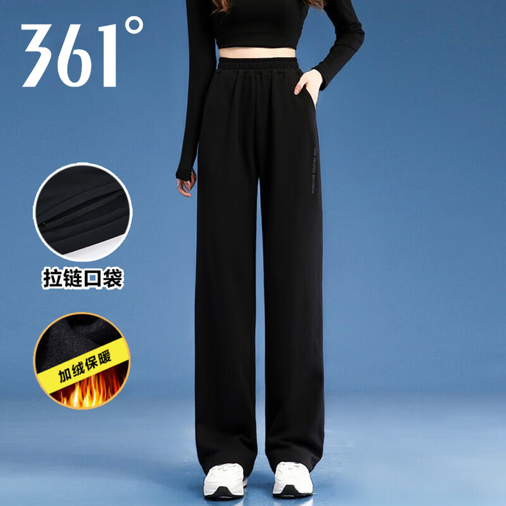 361度运动裤女2025秋冬季新款针织长裤休闲裤加绒宽松直筒卫裤女