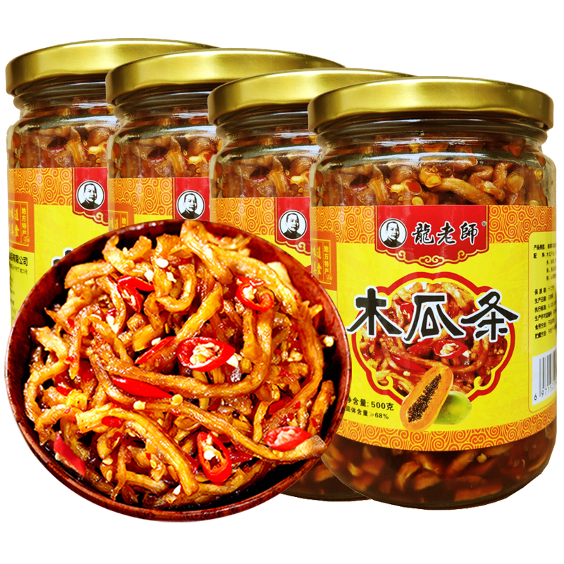 龙老师木瓜条500克*2瓶装 广西横县特产香辣木瓜丝丁酱菜下饭咸菜