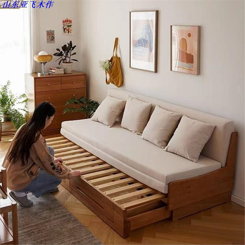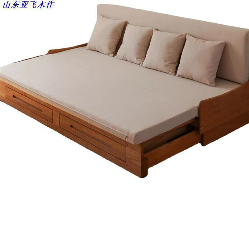 欧式樱桃木坐卧两用沙发床 全黑胡桃木白橡木客厅抽拉伸缩式沙发