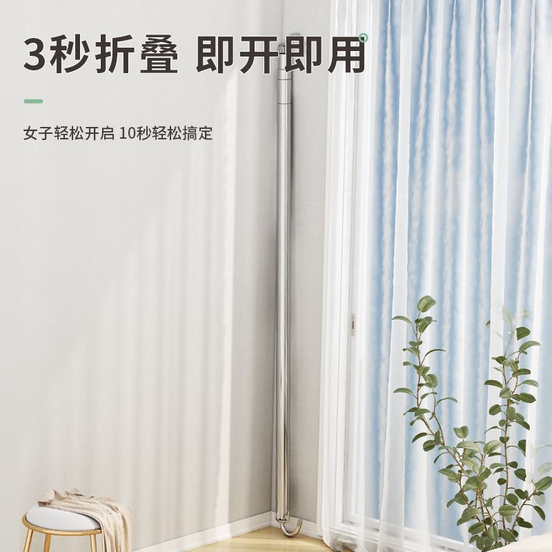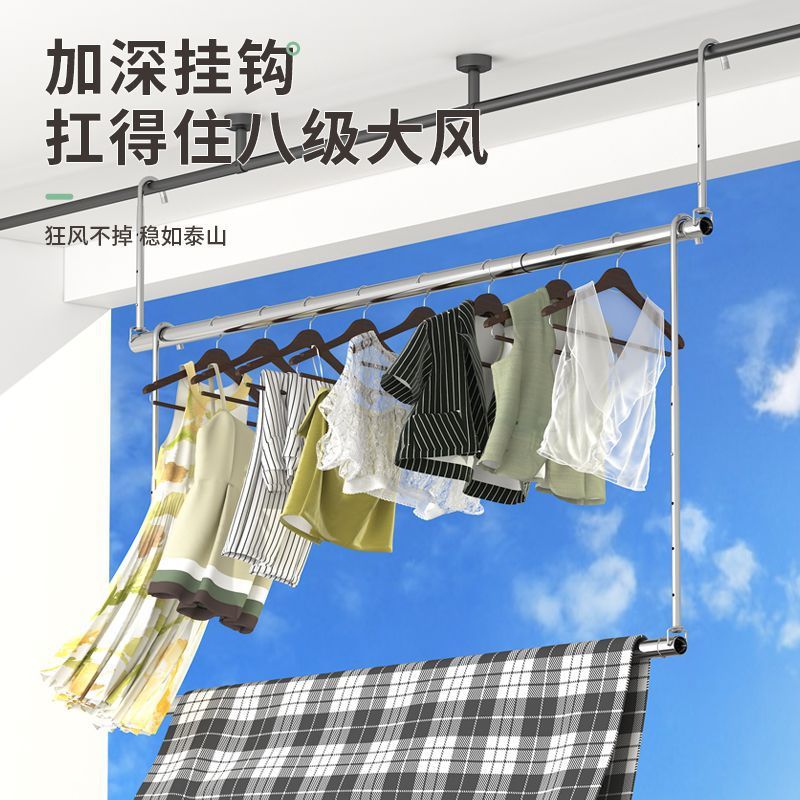 不锈钢折叠晾衣架免打孔可伸缩杆挂钩式凉晒衣服杆阳台晒被子神器