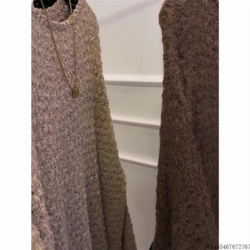 韩系别致慵懒风纯色圆领针织衫女2025新款软糯气质复古显瘦长袖秋