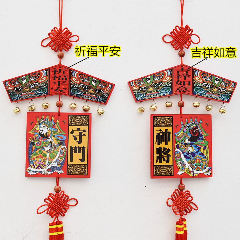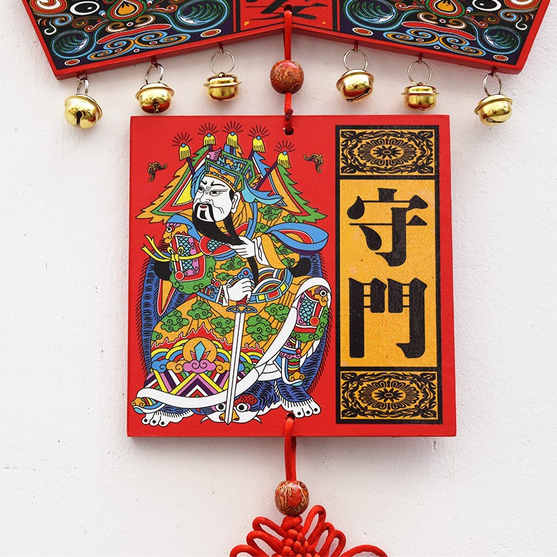 门神年画木质挂牌大门复古中国风客厅装饰挂件新年春节脸谱挂饰品