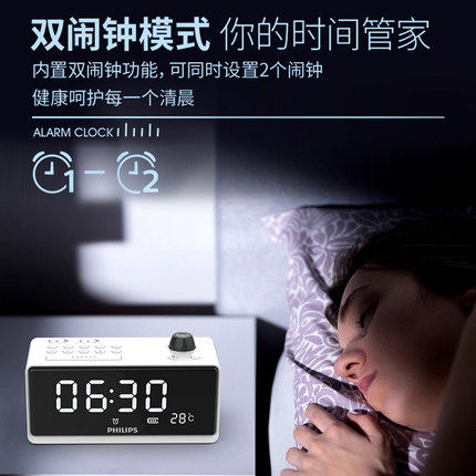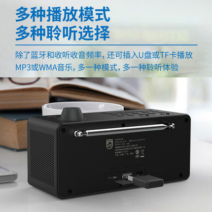 Philips/飞利浦 蓝牙时钟收音机TAR3578闹钟音箱插卡音响一体fm调