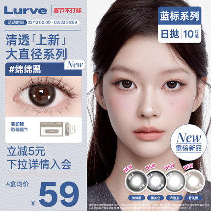 Lurve美瞳蓝标日抛绵绵黑自然珍珠水母蓝色黑色小大直径10片装