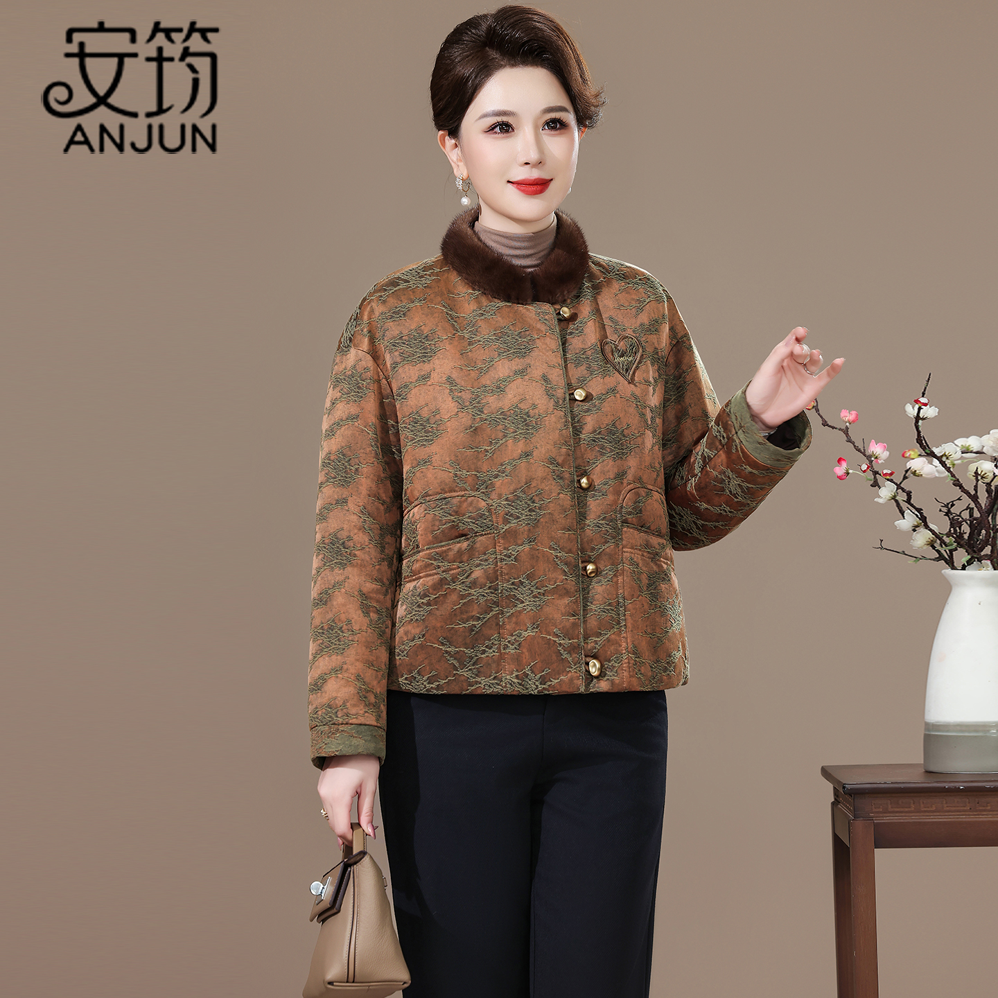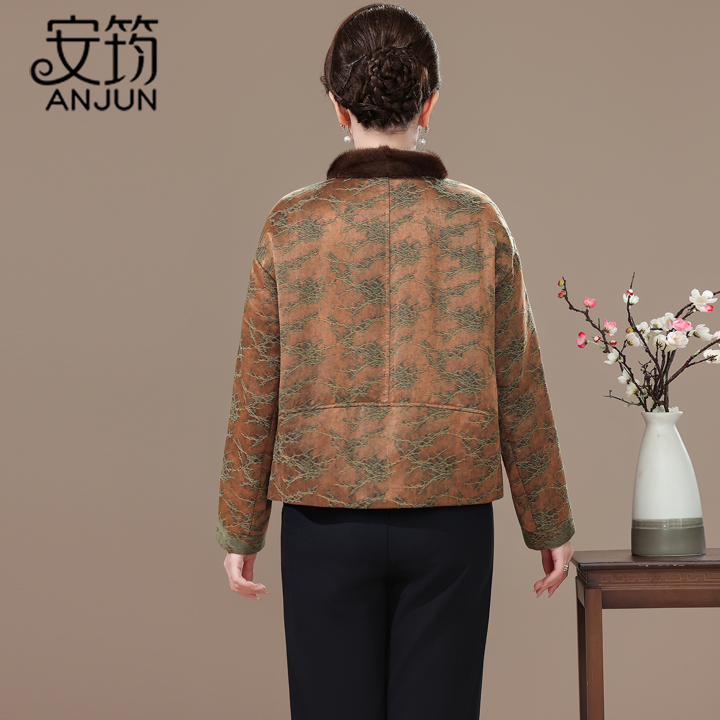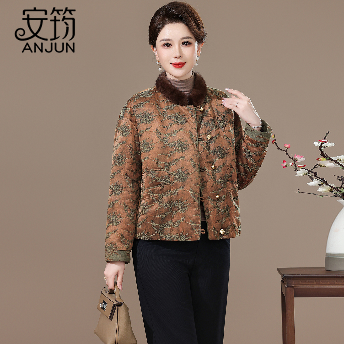 海宁水貂毛领短款皮草鹅绒羽绒服冬季外套女2025新款中式国风洋气