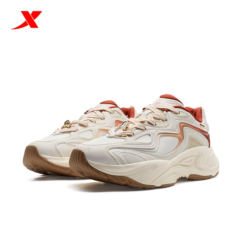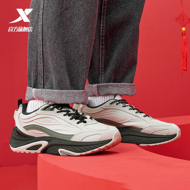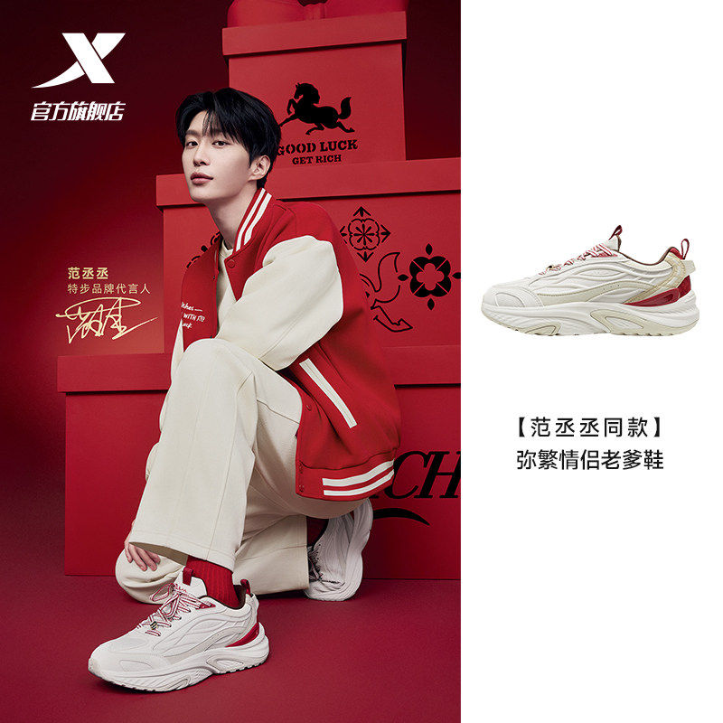 特步弥繁丨休闲鞋男鞋冬季革网轻便百搭运动鞋复古老爹鞋新年女鞋