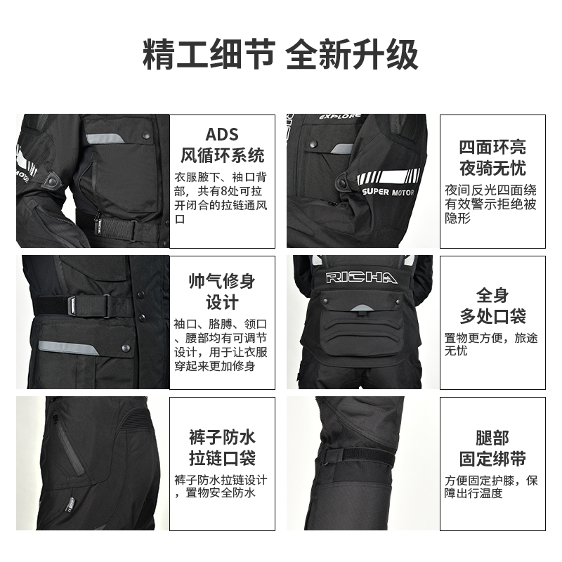 RICHA鲁滨摩托车拉力服男防风防水防摔透气四季长途摩旅骑行服女