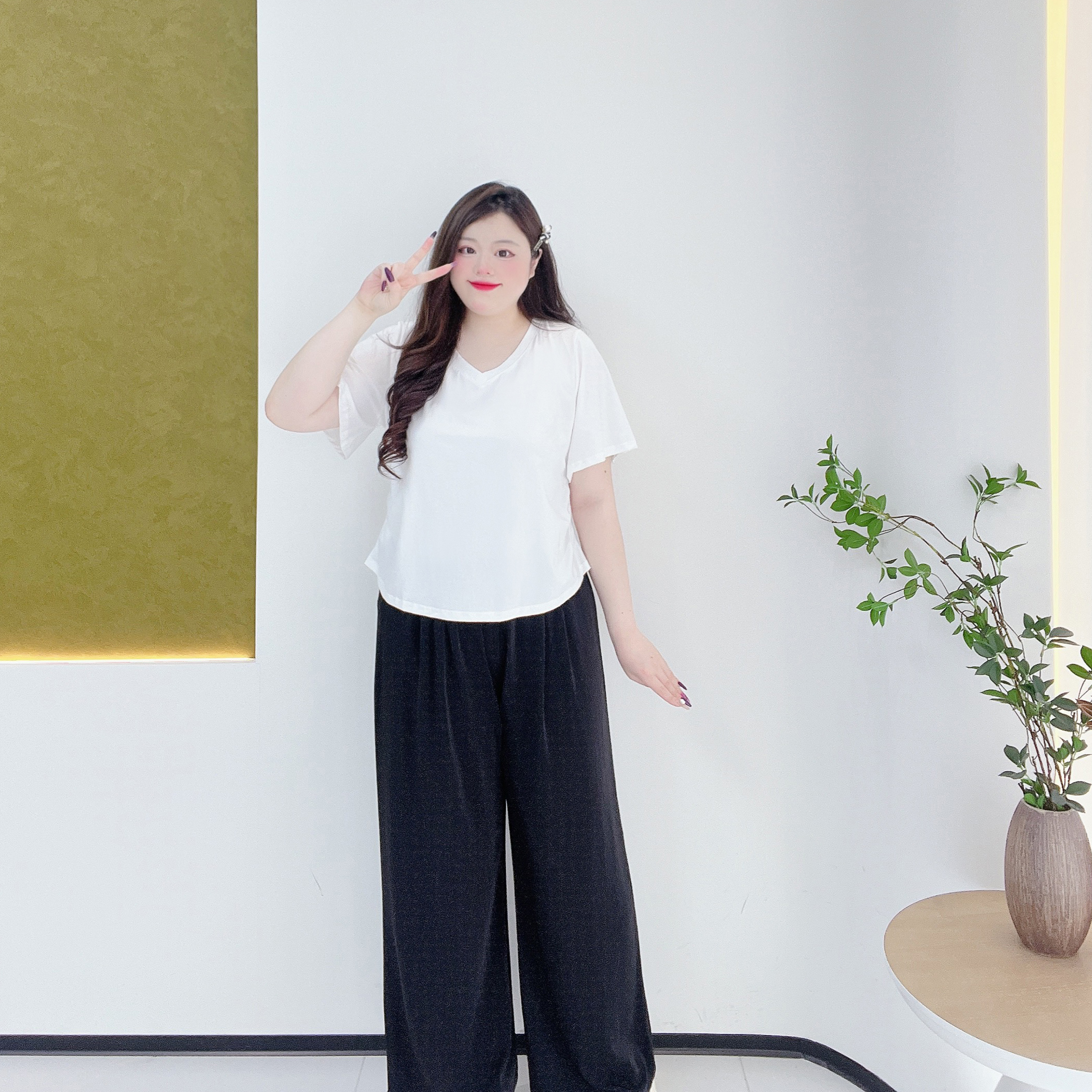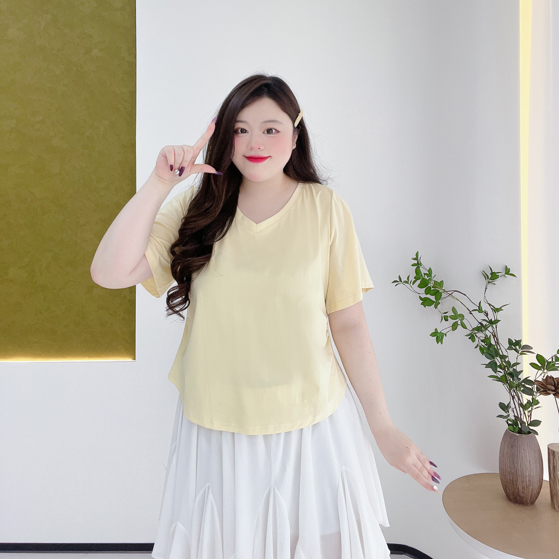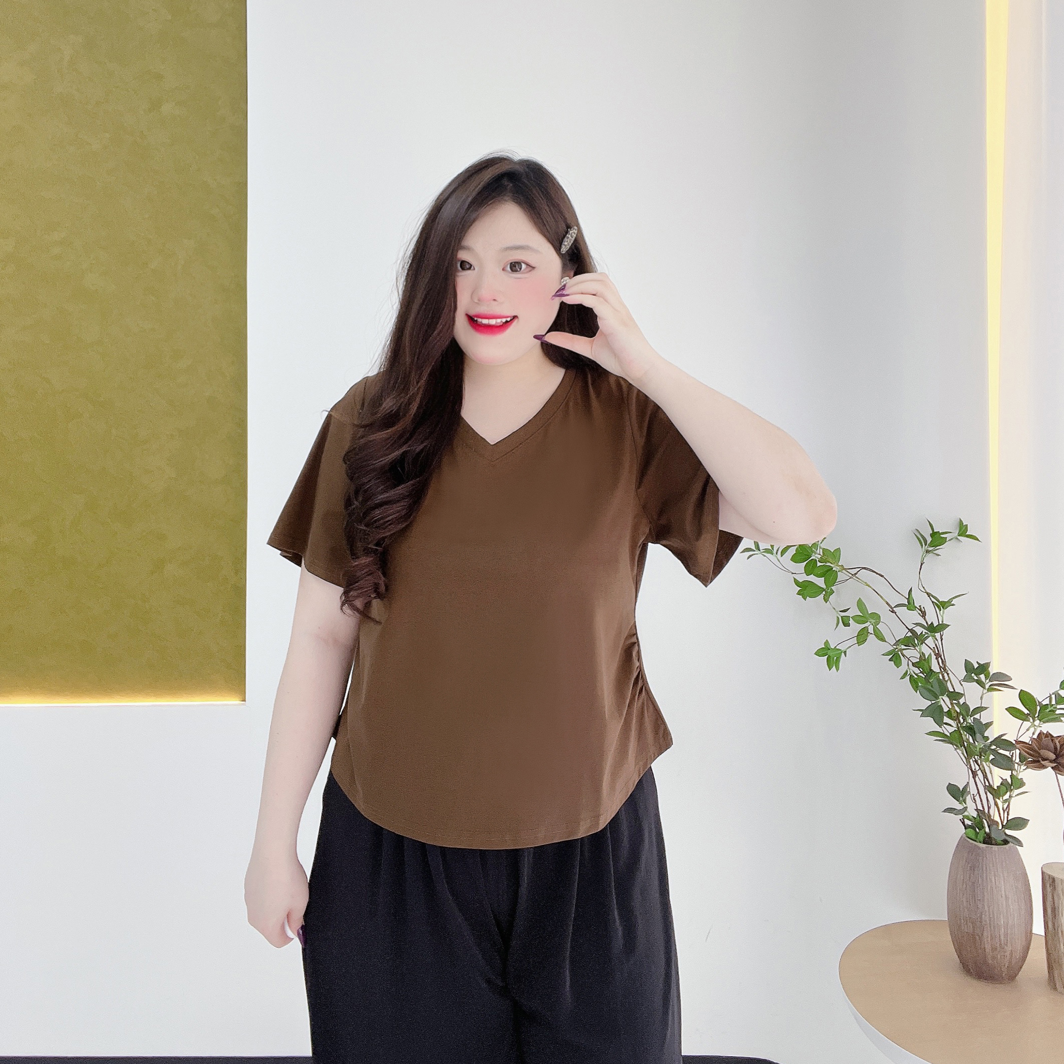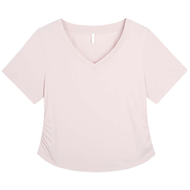 胖莹莹大码女装2025夏季韩系减龄掐褶百搭V领纯色显瘦正肩短袖T恤