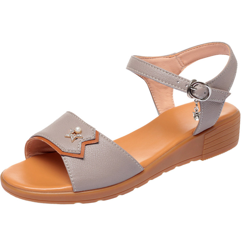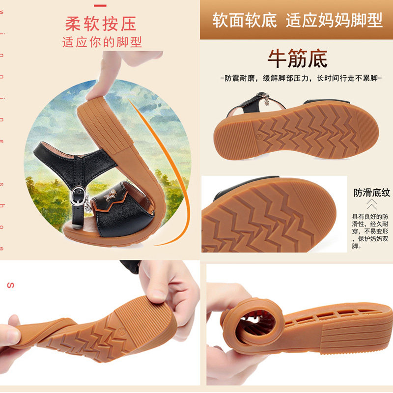 妈妈凉鞋真皮g软皮软底夏季新款舒适平底防滑低跟中老年人大码女