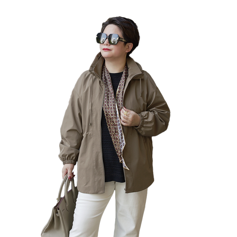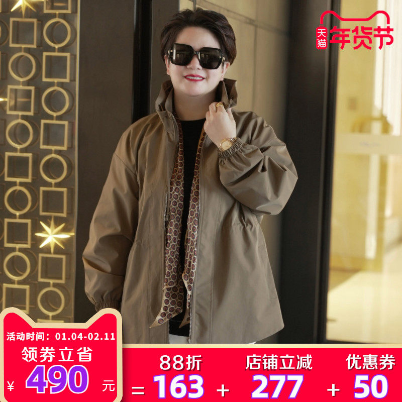 向红同学大富婆女装风衣女款2025新款大码显瘦廓形短款外套WT073