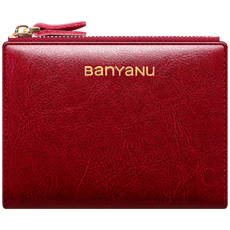 复古牛皮女士钱包小巧短款真皮精致零钱包时尚钱夹折叠皮夹薄网红