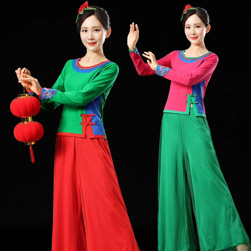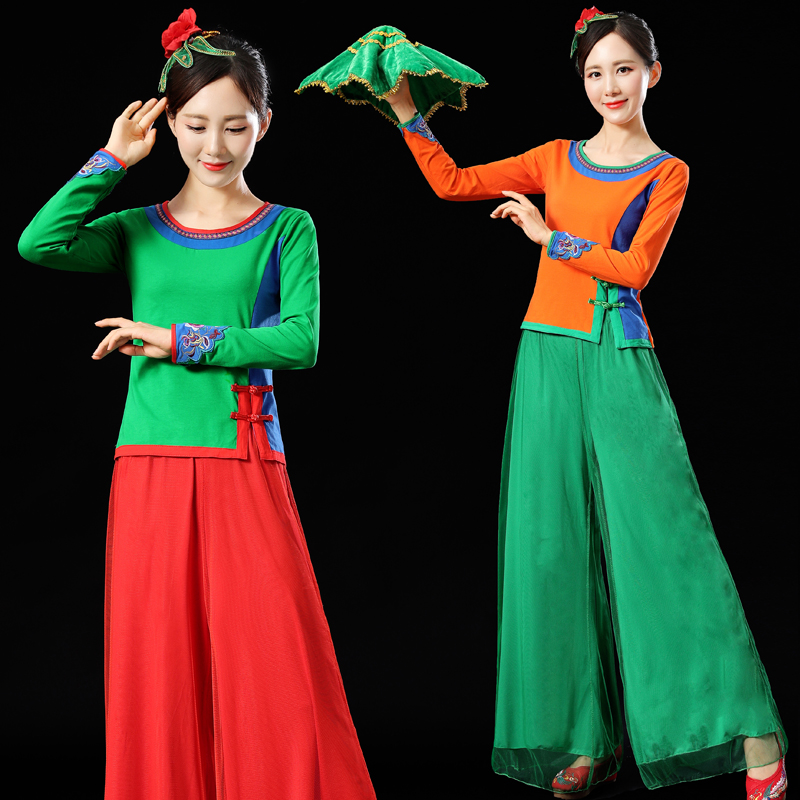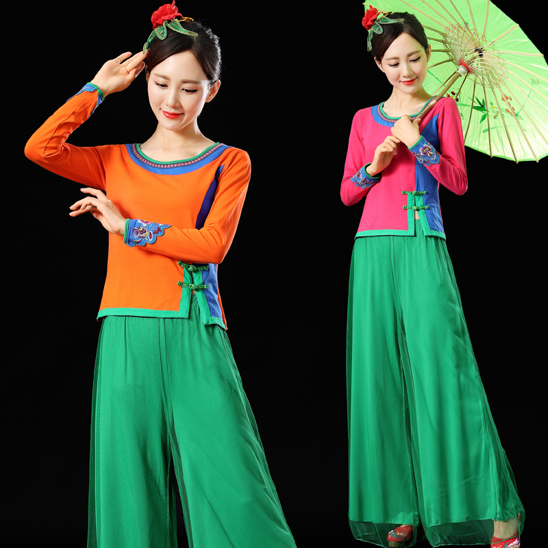 广场舞服装新款套装春夏季中老年纯棉长袖上衣绣花短袖成人跳舞衣