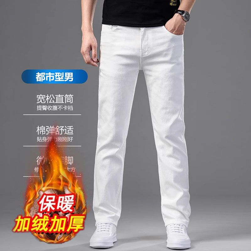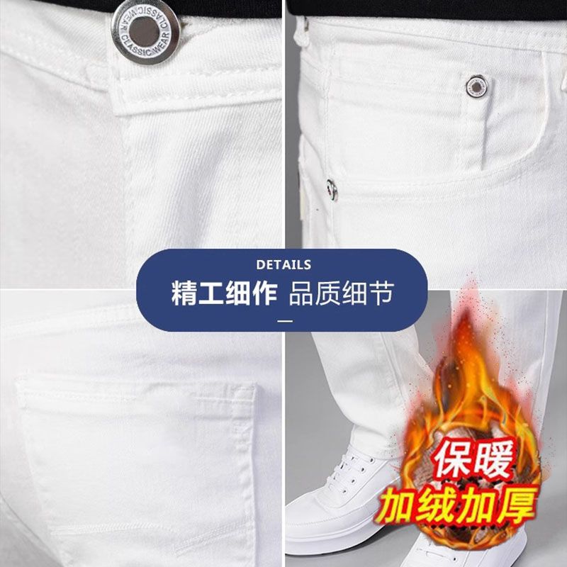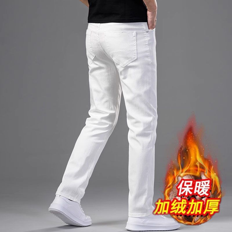 香港2025冬季高端白色牛仔裤男修身小脚商务弹力百搭休闲纯白长裤