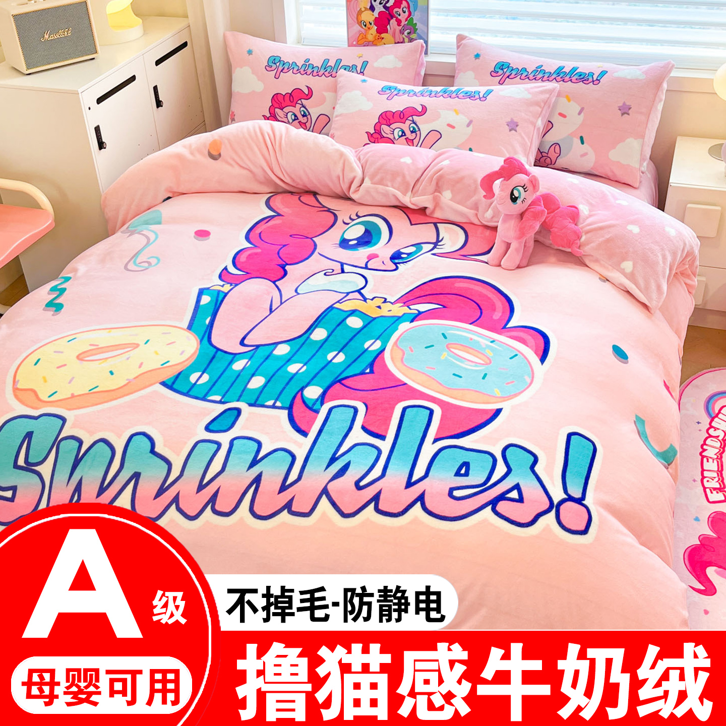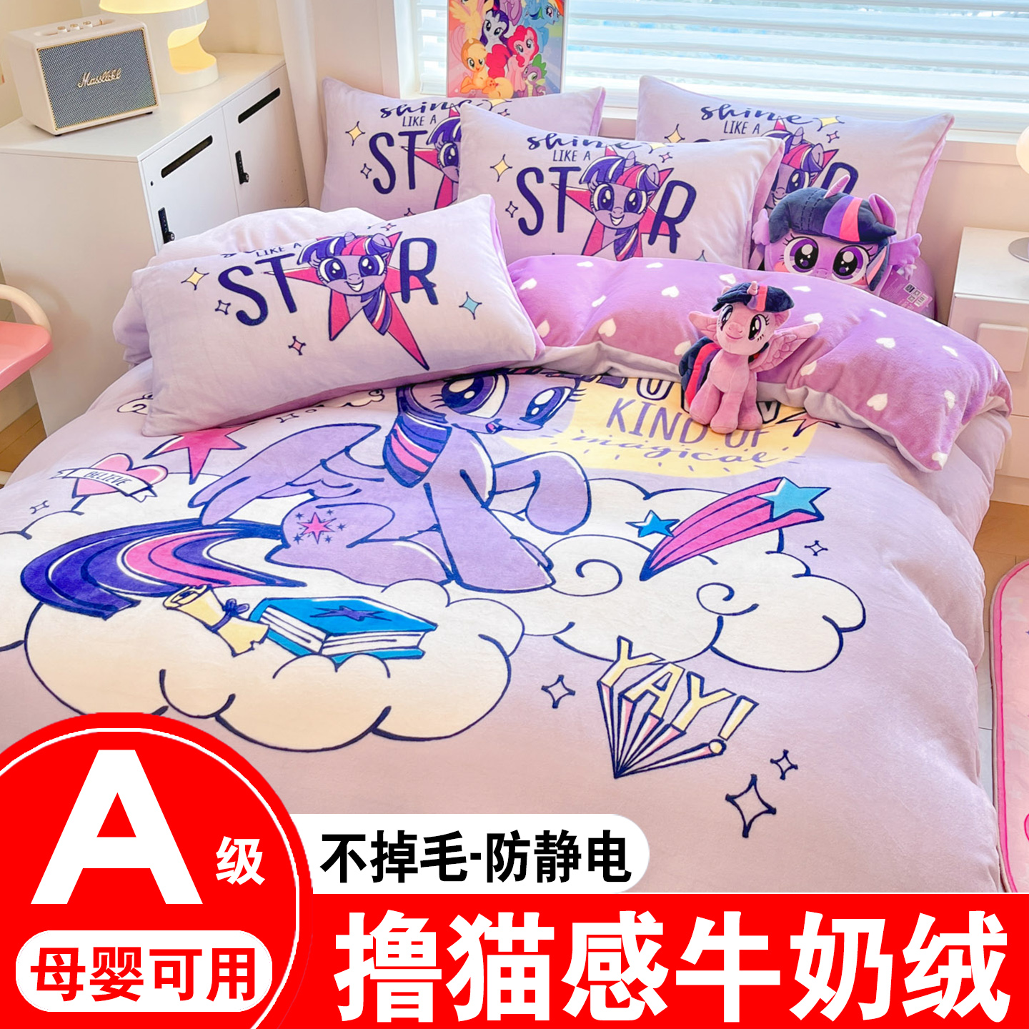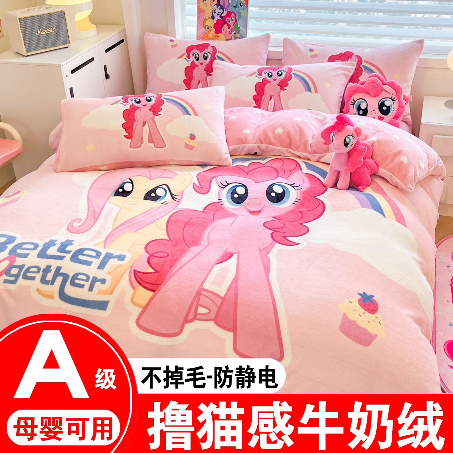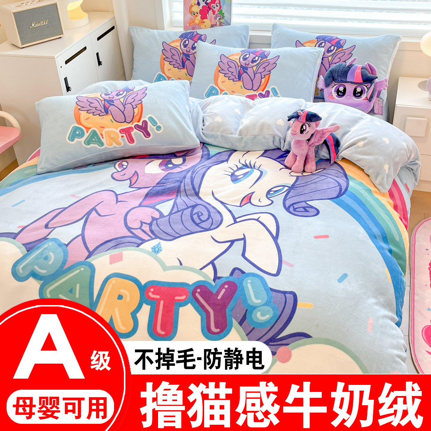 小马宝莉牛奶绒四件套冬季珊瑚绒被套床单儿童女孩床品三件套床笠