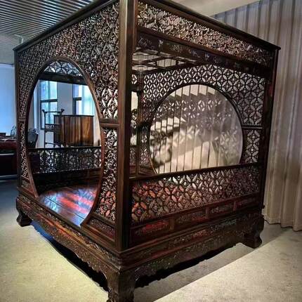 老挝大红酸枝家具红木架子床交趾黄檀双人大床明清古典雕花独板