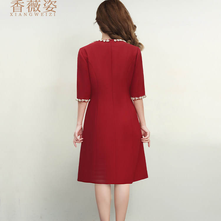 香薇姿韩版A字裙修身显瘦大红色