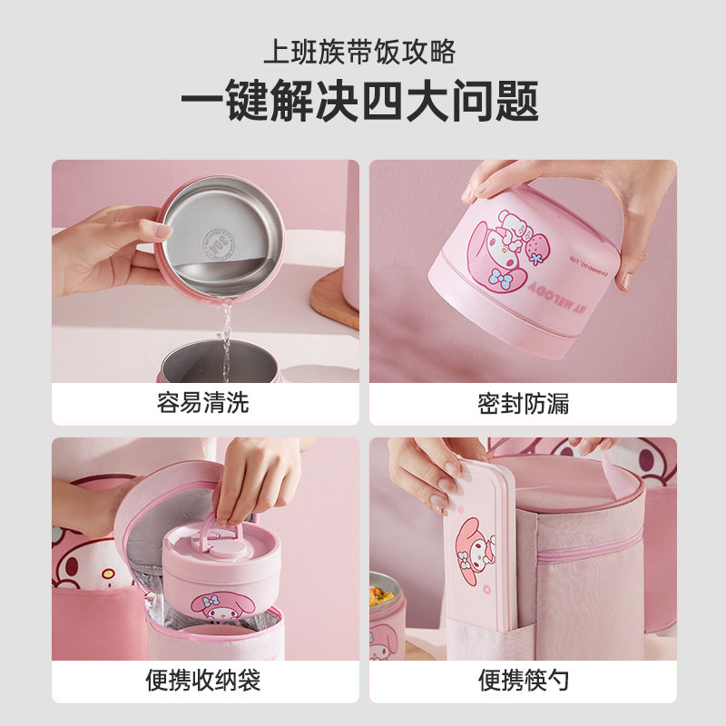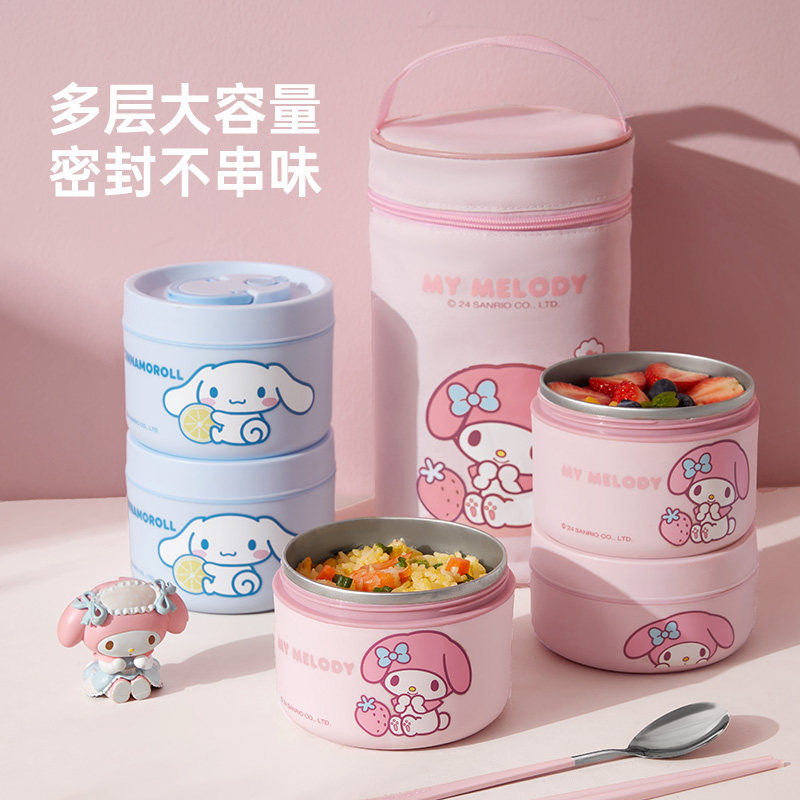 三丽鸥多层保温饭盒不锈钢上班族带饭可微波炉学生便当餐盒桶汤碗