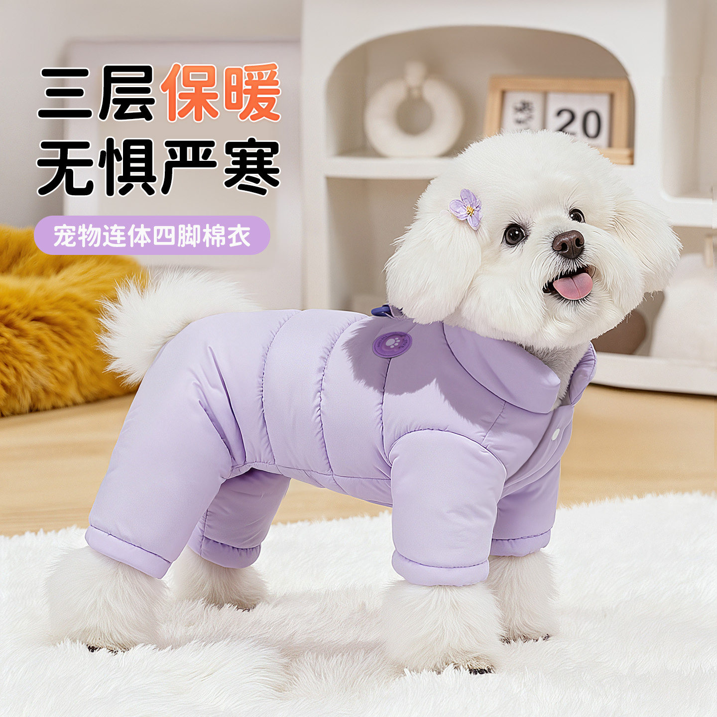 小狗狗冬天羽绒棉服四脚蓄热锁温